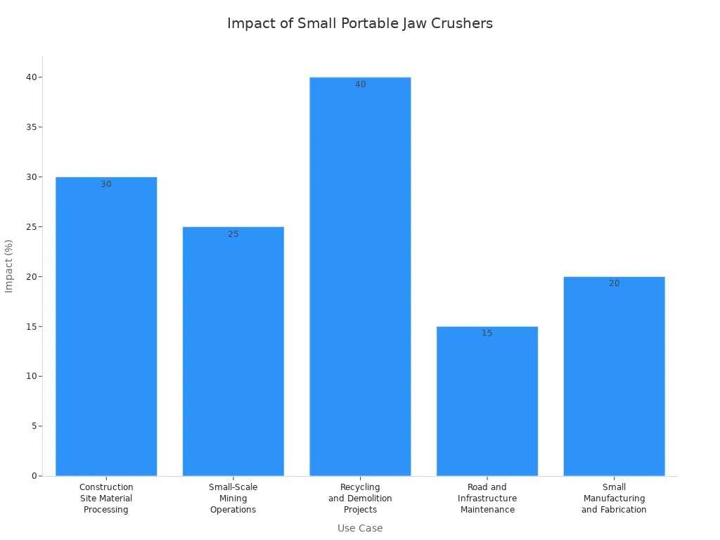You might need a small portable jaw crusher for tight places or quick jobs. These crushers help you crush things where you work and save money. You can use a small mobile jaw crusher for building waste, mining, or recycling. The Terex EvoQuip Bison 120 crushes up to 80 tons each hour. The Bison 35 is very small and good for small companies. The Dragon CR400 and CM CR 600 work well in cities and green projects.